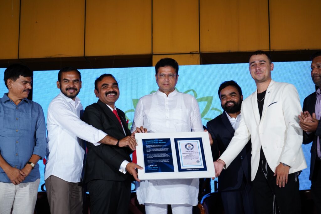 In a prestigious ceremony held in Hyderabad, Telangana Minister Duddilla Sridhar Babu, the chief guest, presented the Guinness World Record certificate to Sampangi Group in the presence of Guinness representatives. Minister Sridhar Babu lauded Dr. Ramesh Sampangi and Suresh Sampangi for their transformative contributions to society and their pioneering leadership, extending heartfelt congratulations for this historic milestone.