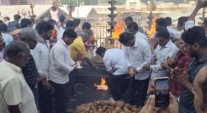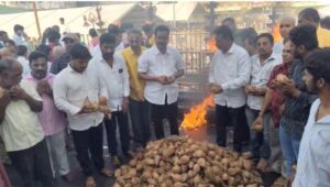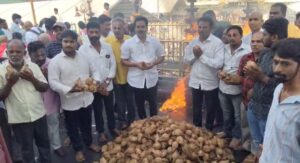 As a gesture of devotion and to seek blessings for the Chief Minister’s long life, good health, and continued leadership, Sridhar Varma offered 750 coconuts and lit 7.5 kilograms of camphor at the Akhilandam in front of Lord Sri Venkateswara Swamy.
